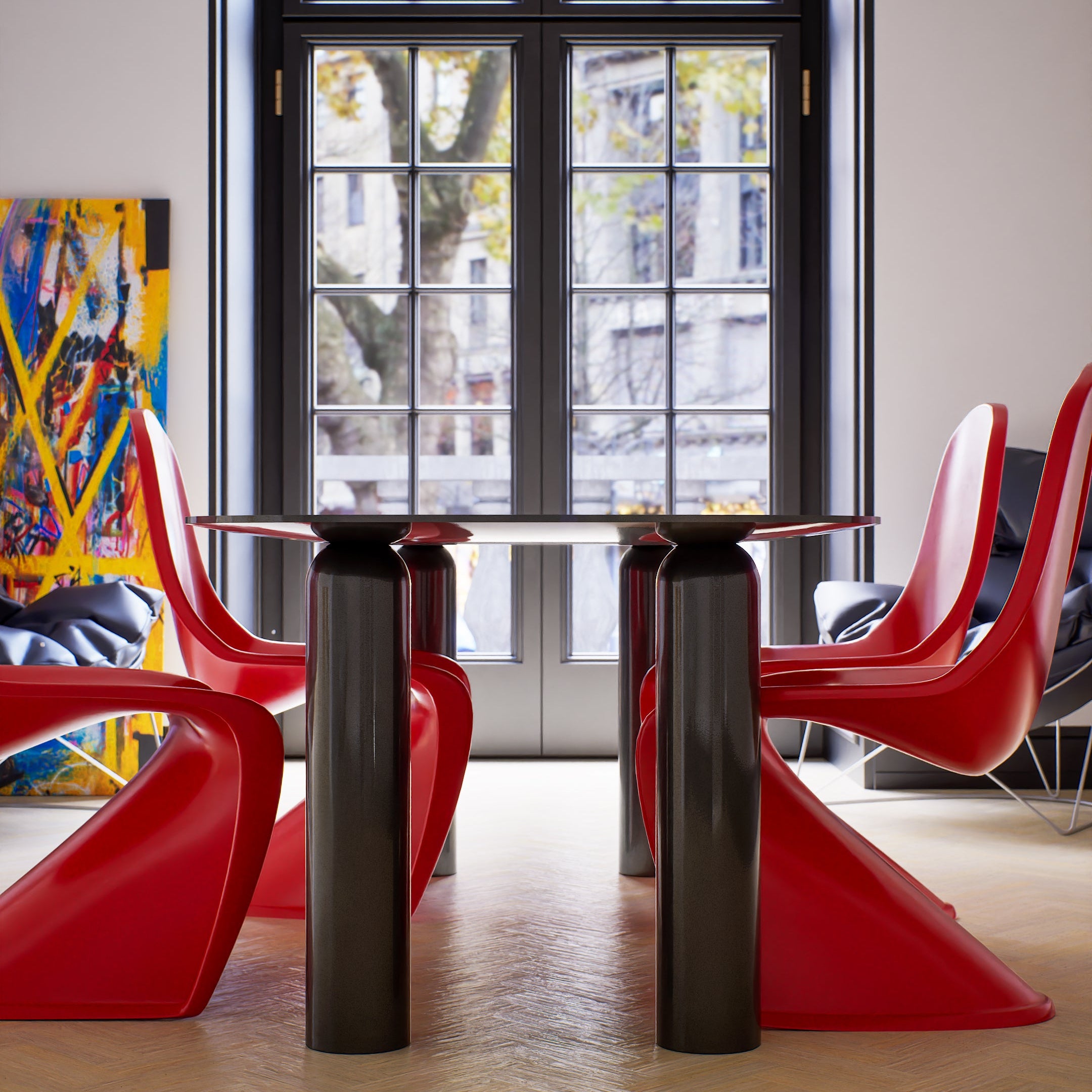 To stół dla osób, które wolą mieć w przestrzeni jeden mocny akcent zamiast wielu przypadkowych elementów. Proporcje, rytm nóg, delikatne podcięcia i kolor z palety RAL zostały dobrane tak, aby Iki Yama wyglądał świetnie zarówno w stonowanych beżach, jak i w odważnych, nasyconych barwach.
